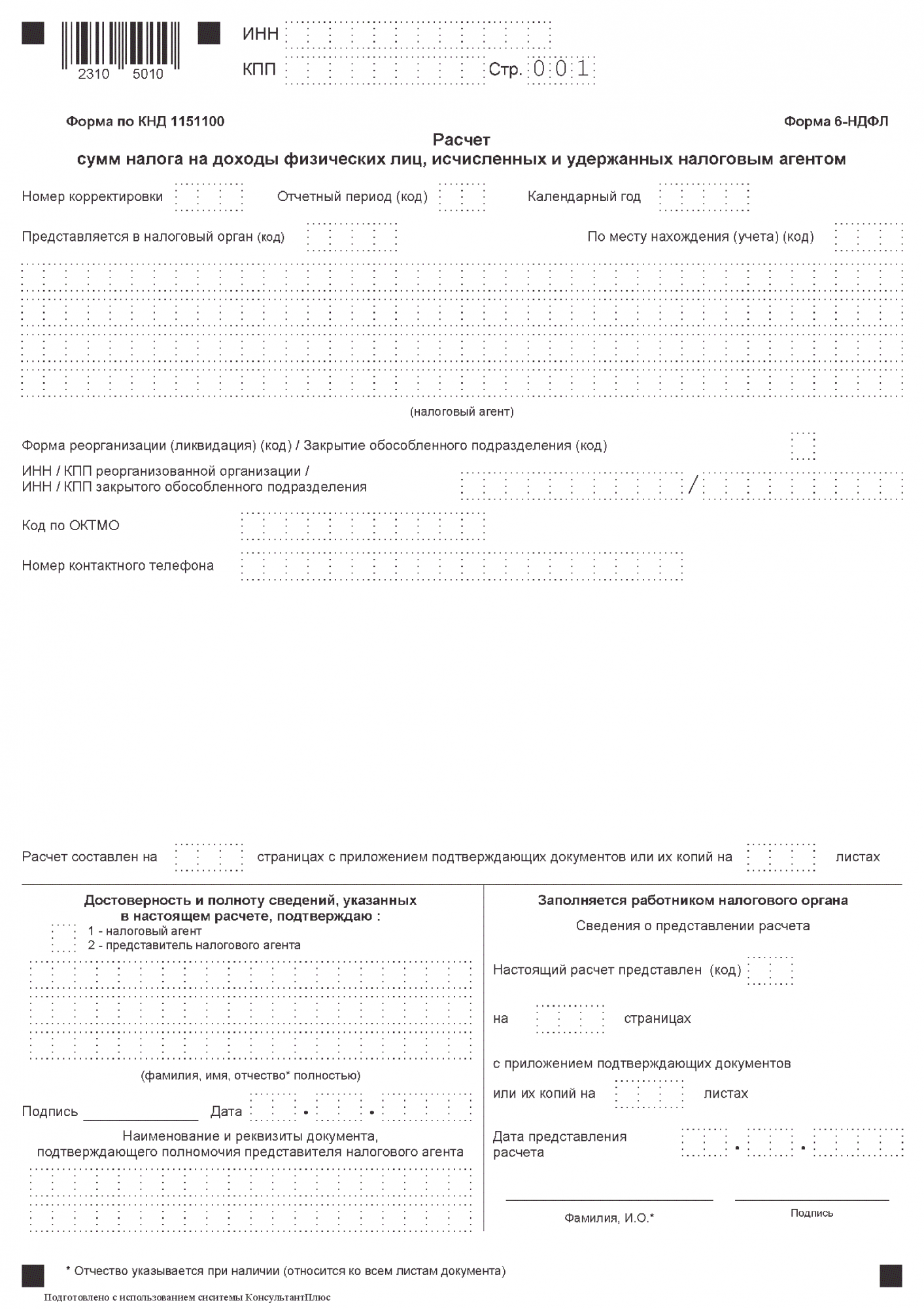 Бланк и образец формы 6-НДФЛ за 2025 год