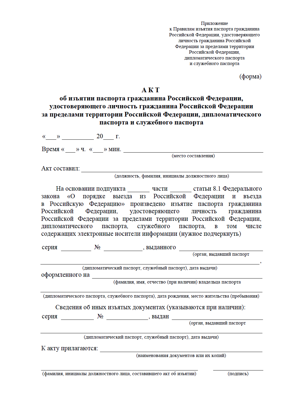 Акт об изъятии паспорта гражданина РФ