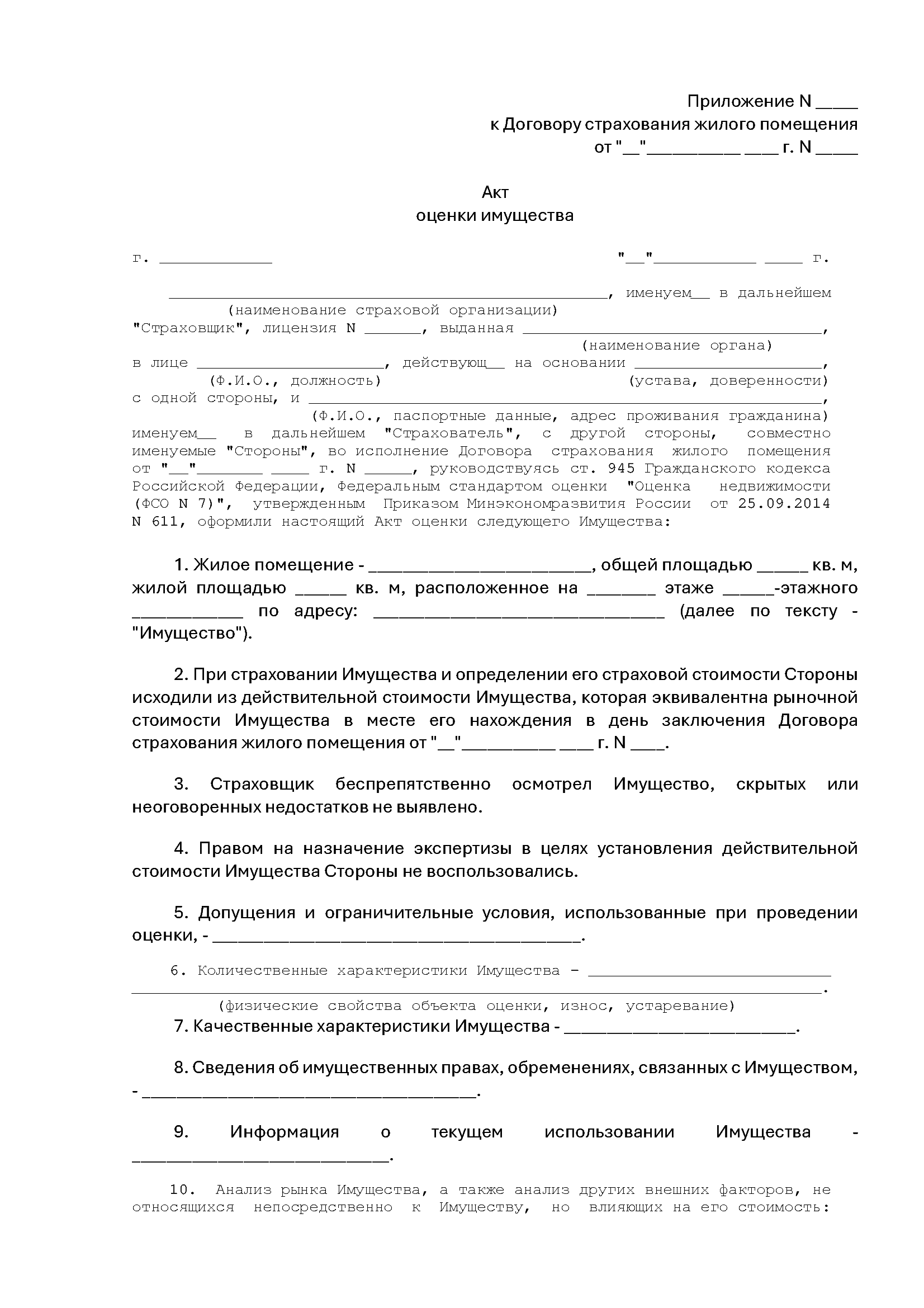 Акт оценки имущества (для страхования)
