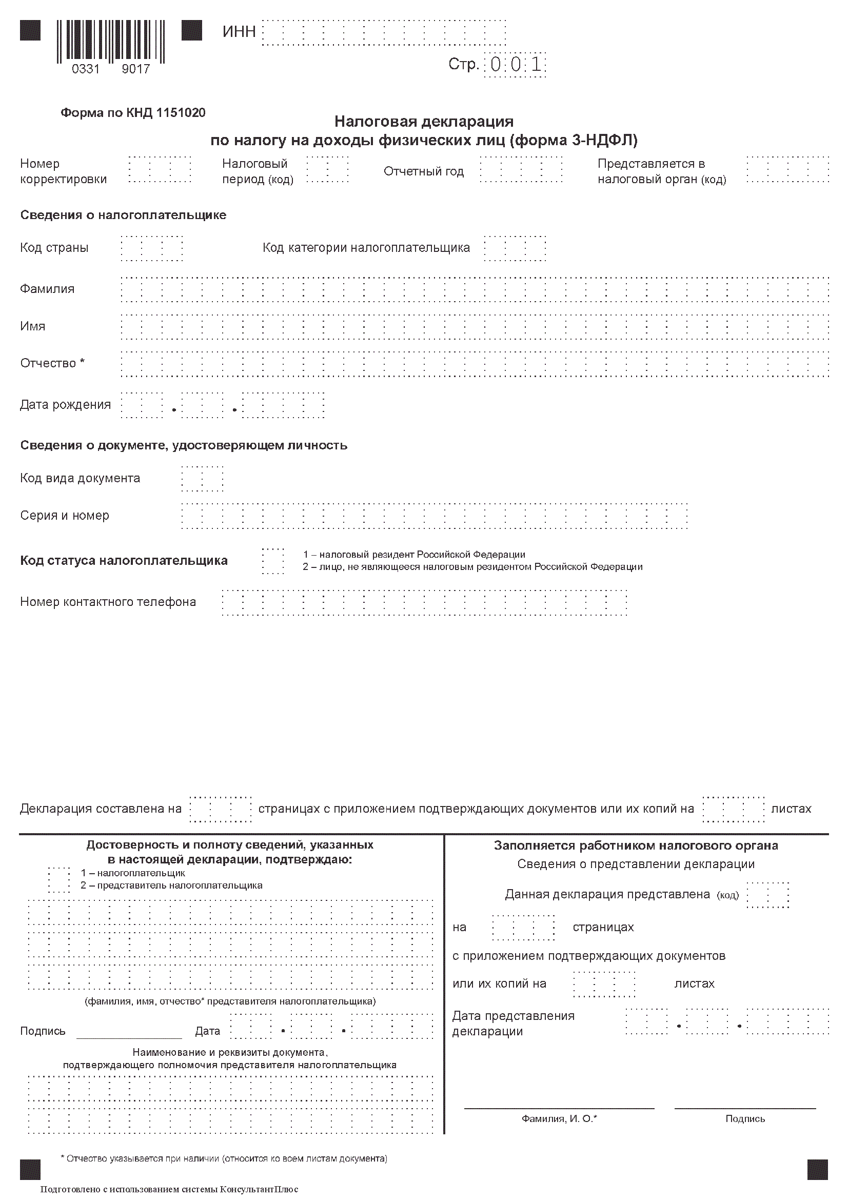 Образец и бланк декларации 3-НДФЛ за 2022 год