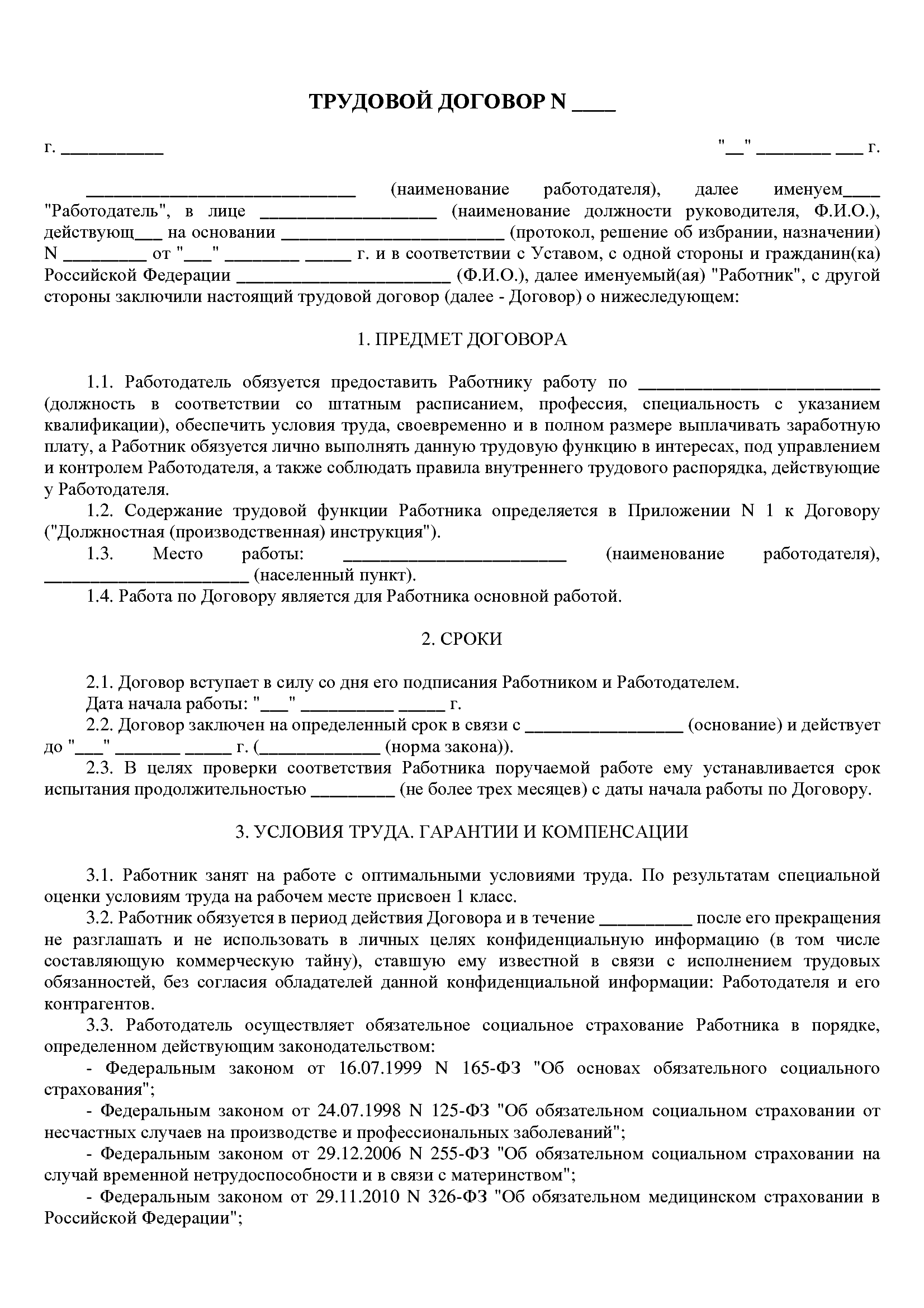Общее описание трудового договора как документа см. на странице трудовой договор.