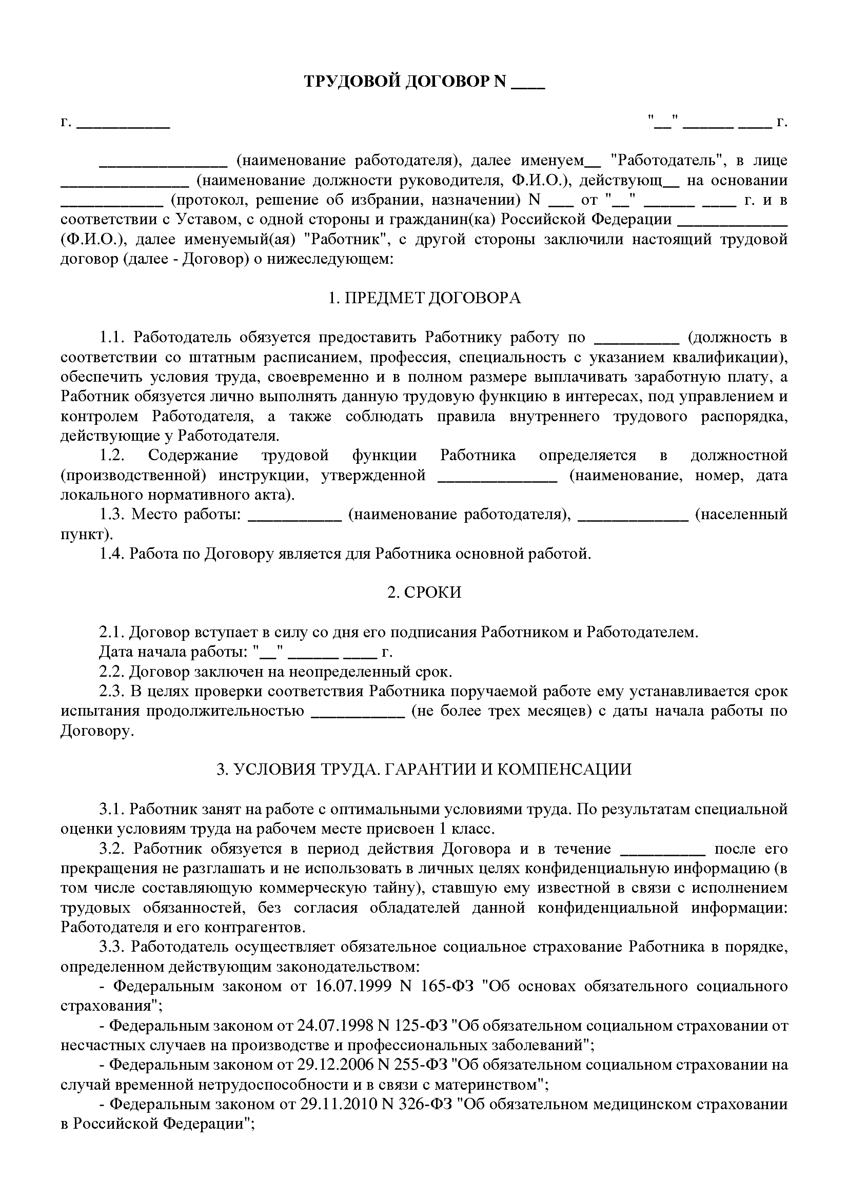Общее описание трудового договора как документа см. на странице трудовой договор.