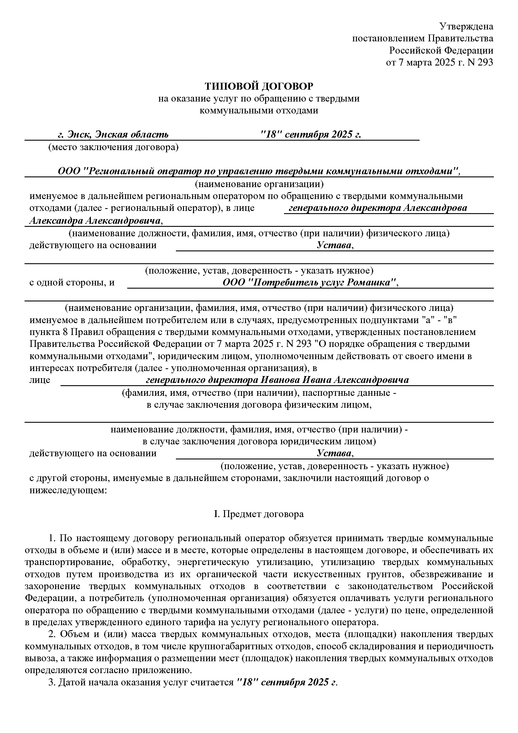 Договор может быть заключен путем подписания письменного документа либо считается заключенным в силу закона при фактическом пользовании услугой регионального оператора. Отсутствие подписанного экземпляра договора не освобождает потребителя от обязанности оплачивать услугу.