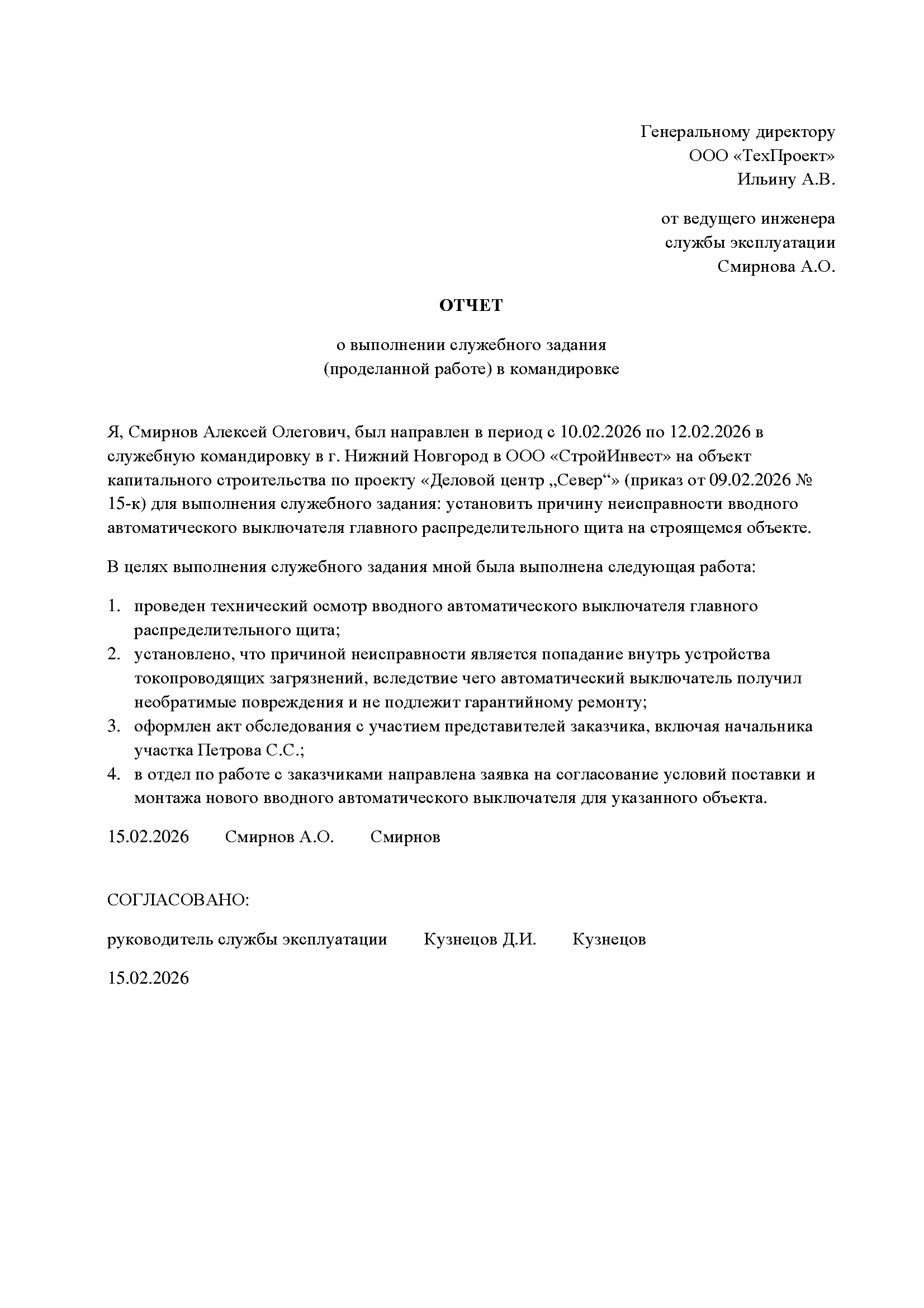 Отчет о выполнении служебного задания (проделанной работе) в командировке