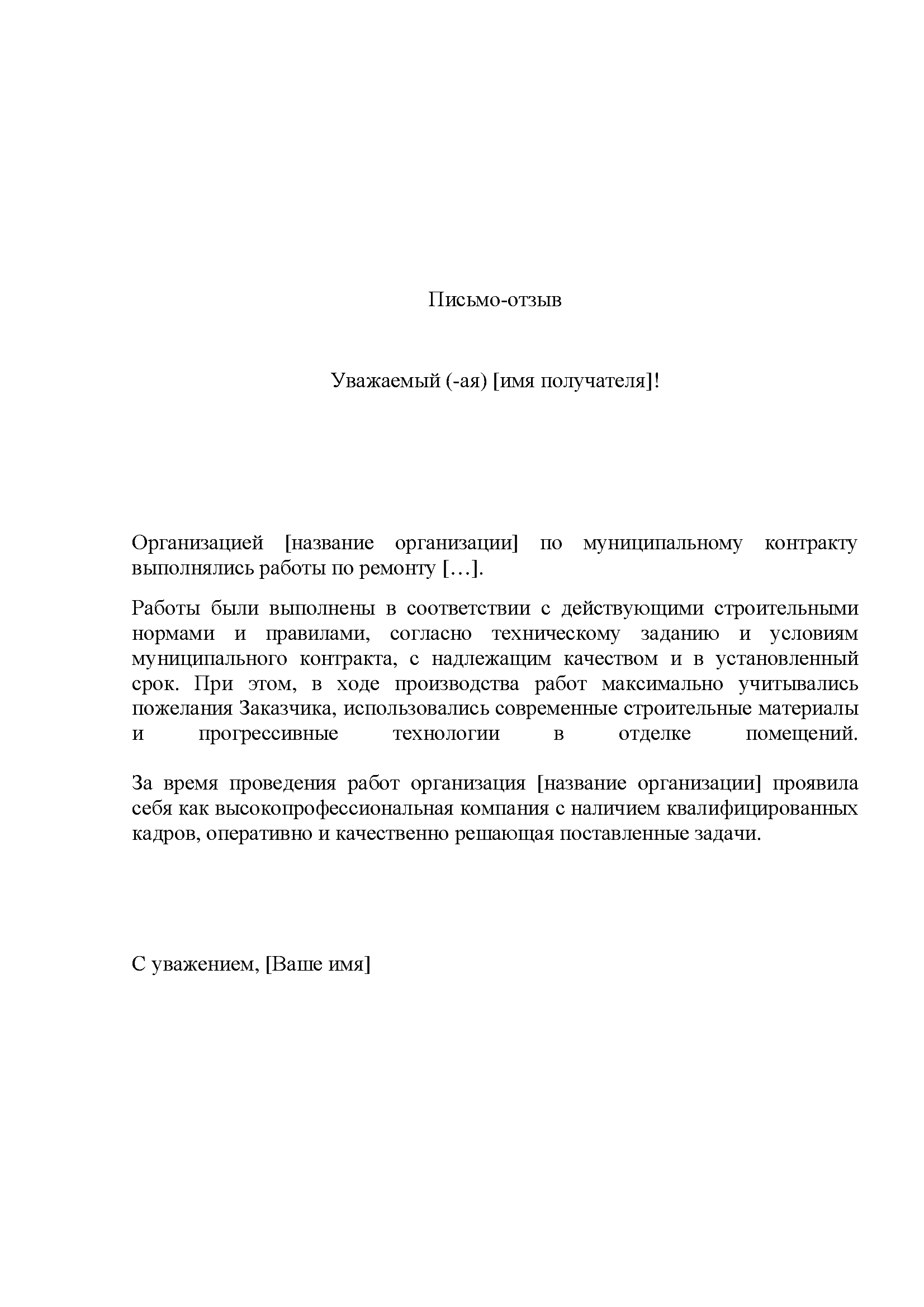 Содержание письма-отзыва
