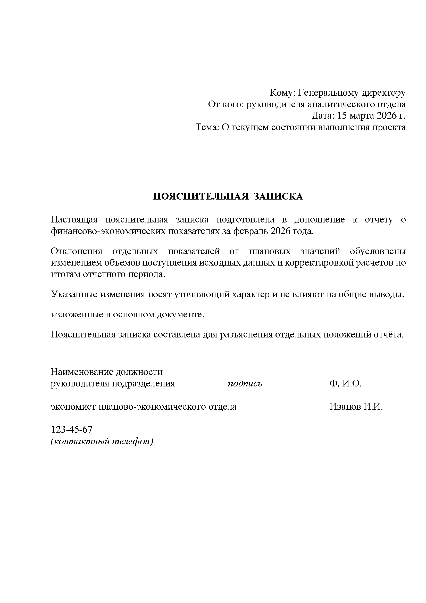 Пояснительная записка не используется для объяснения нарушений или оправдания действий.