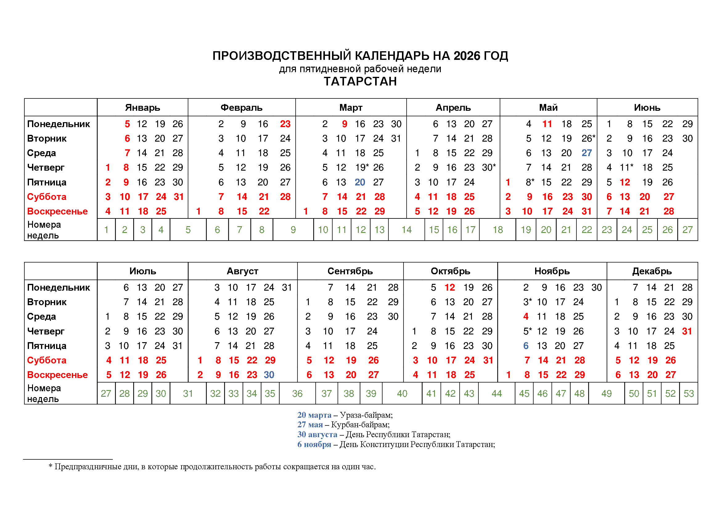Скачать производственный календарь 2026 года для Республики Татарстан