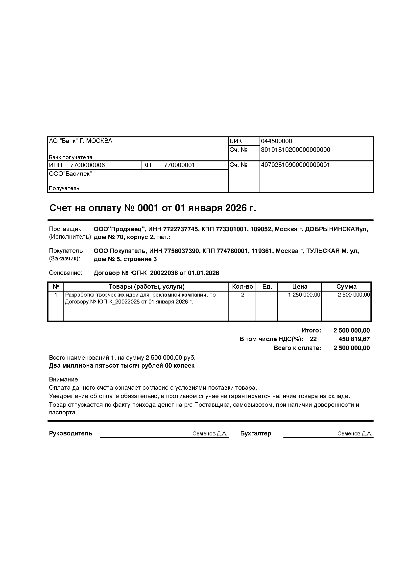 - Нет подписи уполномоченного лица — счёт может быть признан недействительным.