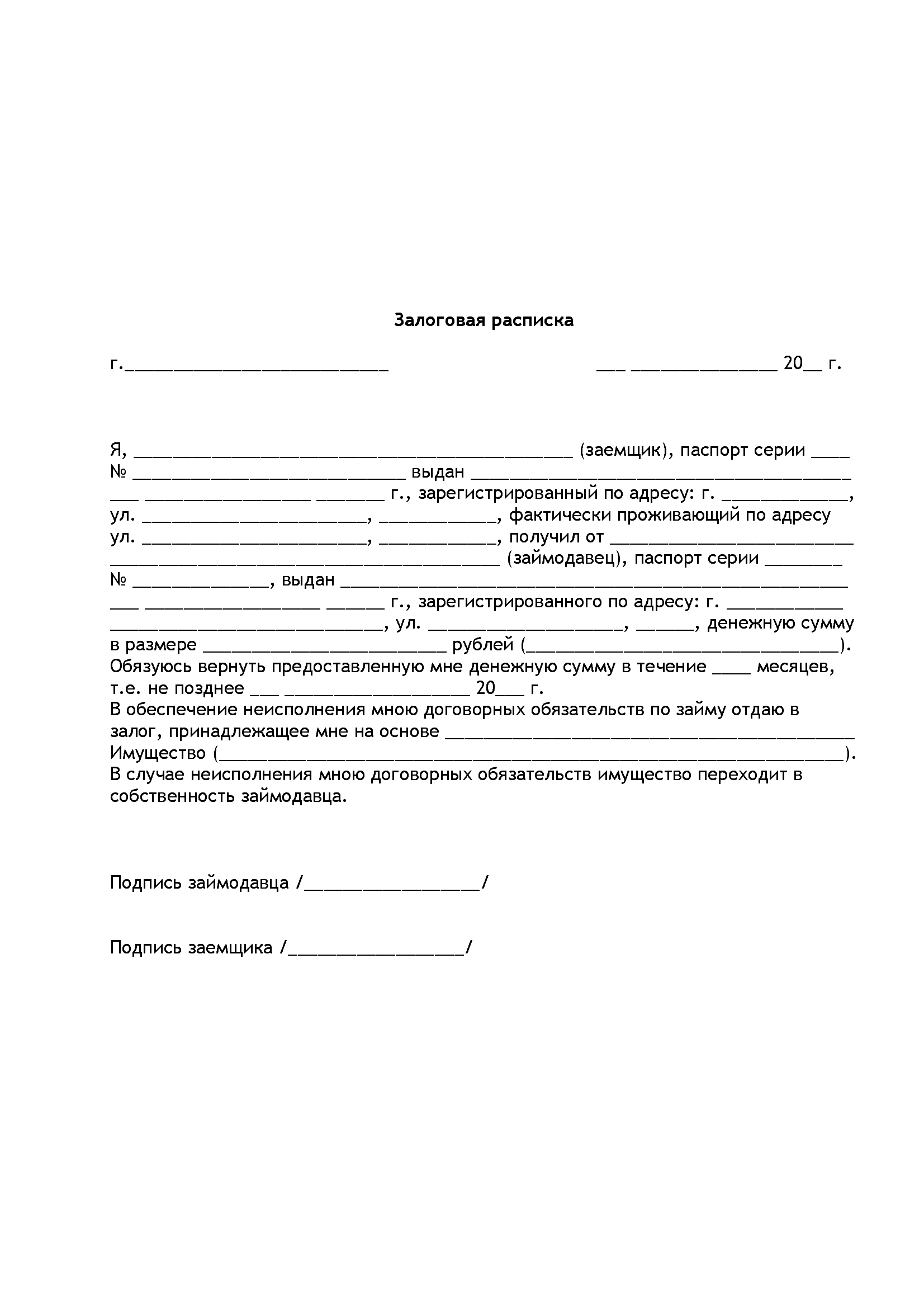 Залоговая расписка