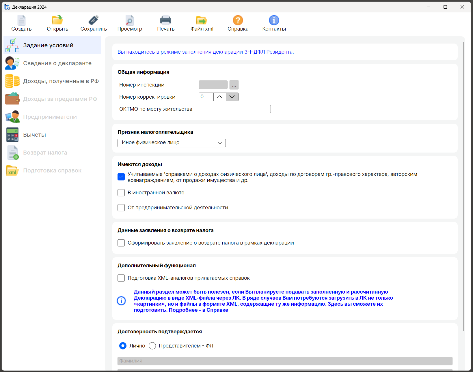 Версия «Декларация-2 2024» предназначена для заполнения декларации 3-НДФЛ за 2024 год.